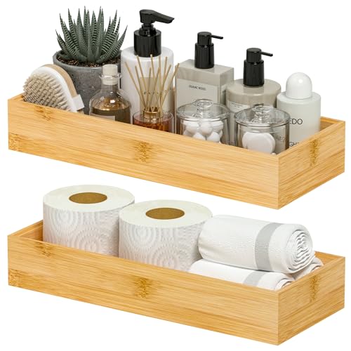 Greatseas Toilet Paper Storage Basket, Bamboo Toilet Tank Tray for Bathroom Organizers and Storage, Deep Toilet Tank Basket Topper Wood Organizer Box Vanity Tray for Counter Decor, 15″ x 6″ x 2.5″