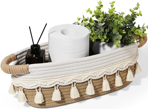ALPIRIRAL Toilet Paper Storage Basket Bathroom, Small Woven Storage Basket for Toilet Tank Top Boho Decor, Decorative Storage Baskets for Organizers and Storage, Fabric Narrow Home Basket Storage